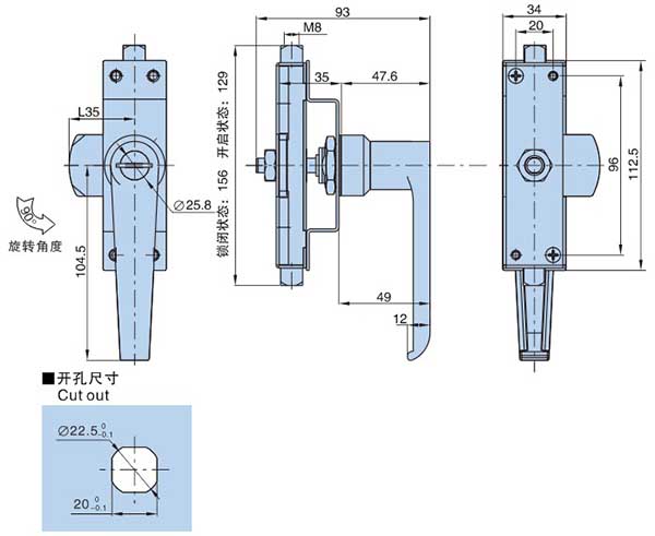 ● Material:Zinc die-casting,Zinc plating steel rod box and cam